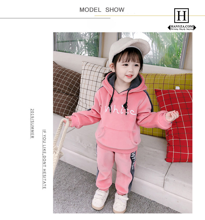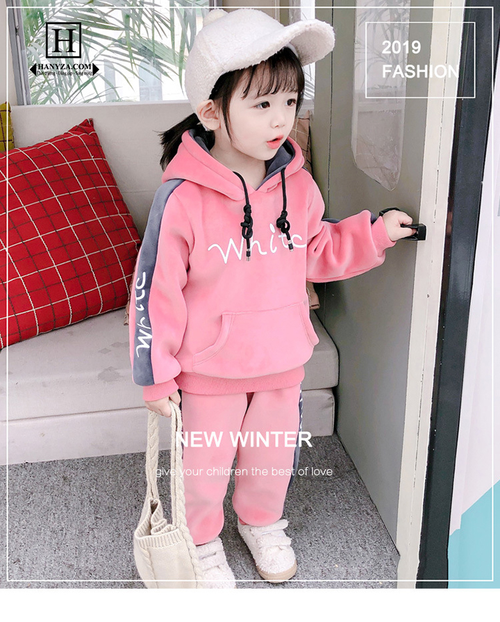 Bộ quần áo nhung mùa đông bé gái 2 mảnh 2361-D901